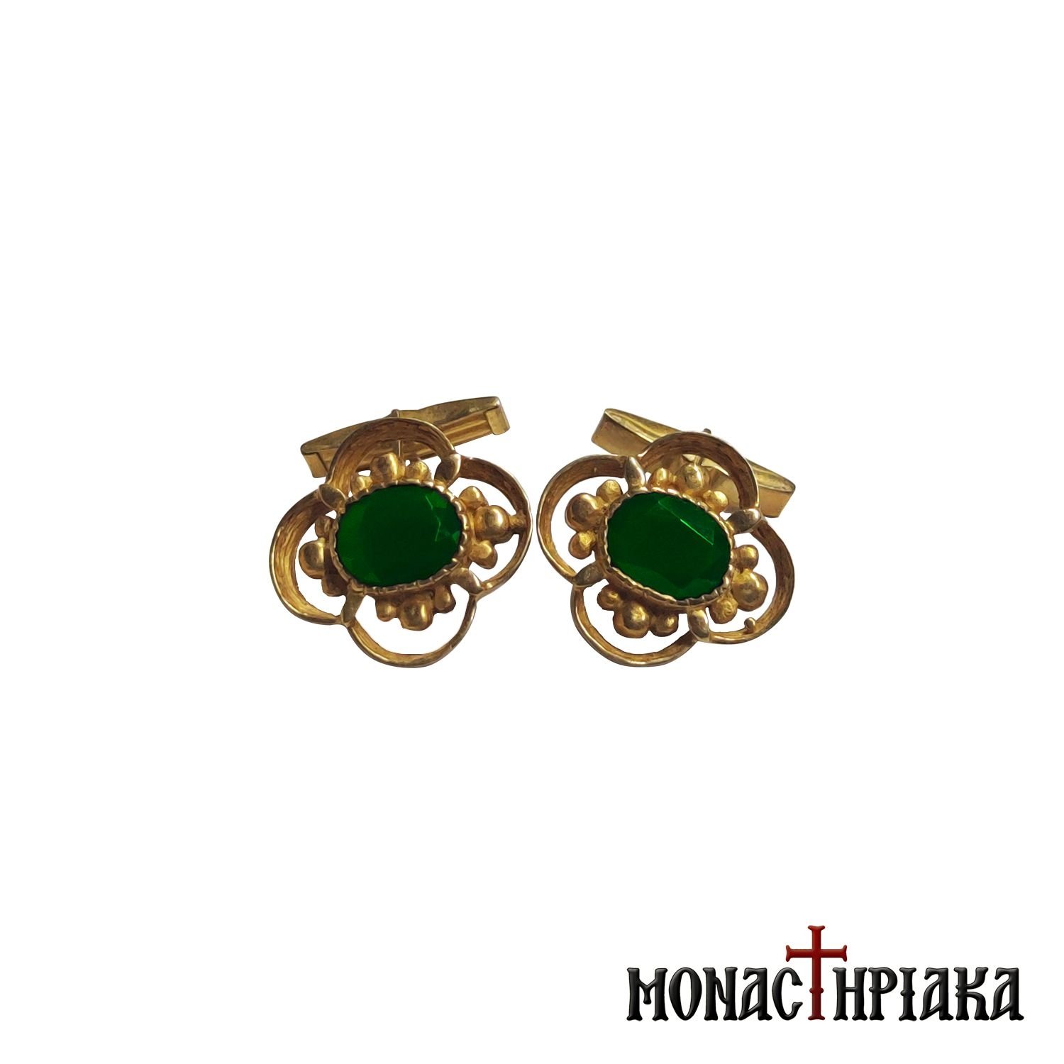 Ασημένια Επίχρυσα Μανικετόκουμπα με Πράσινη Πέτρα