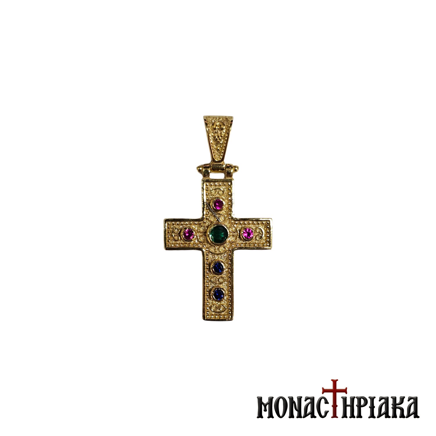 Ασημένιος Επίχρυσος Σταυρός με Σμαραγδί Πέτρες