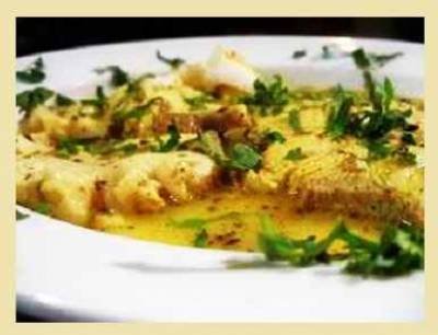 Αλατίζουμε το ψάρι τουλάχιστον 2 ώρες πριν και το βάζουμε σε μία μικρή ρηχή κατσαρόλα. Βάζουμε κρύο νερό, τόσο, ώστε τα κομματάκια του ψαριού να σκεπαστούν λίγο. Έπειτα βάζουμε στη φωτιά το σκεύος μας. Όταν αρχίσει να βράζει προσθέτουμε το λάδι και σε 15-20 λεπτά τη μουστάρδα, τα μπαχαρικά και το χυμό λεμονιού. Κουνάμε καλά την κατσαρόλα και σε 1 λεπτό το κατεβάζουμε. Είναι έτοιμο.