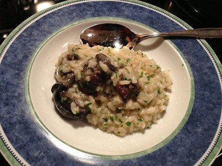 Prepare the snails and as soon as they are boiled, remove their kernel by using a toothpick. Sauté the garlic and the onion in the oil and then sauté the snails for a while. Add some oil, salt and pepper, the dill and 3 cups of water. As soon as it starts to boil, add the rice and mix it in medium temperature, until it becomes crumby enough. Then, add the lemon juice and the wine. Mix it for the last time and cover it. Turn the stovetop off and let the rice imbibe the whole water.