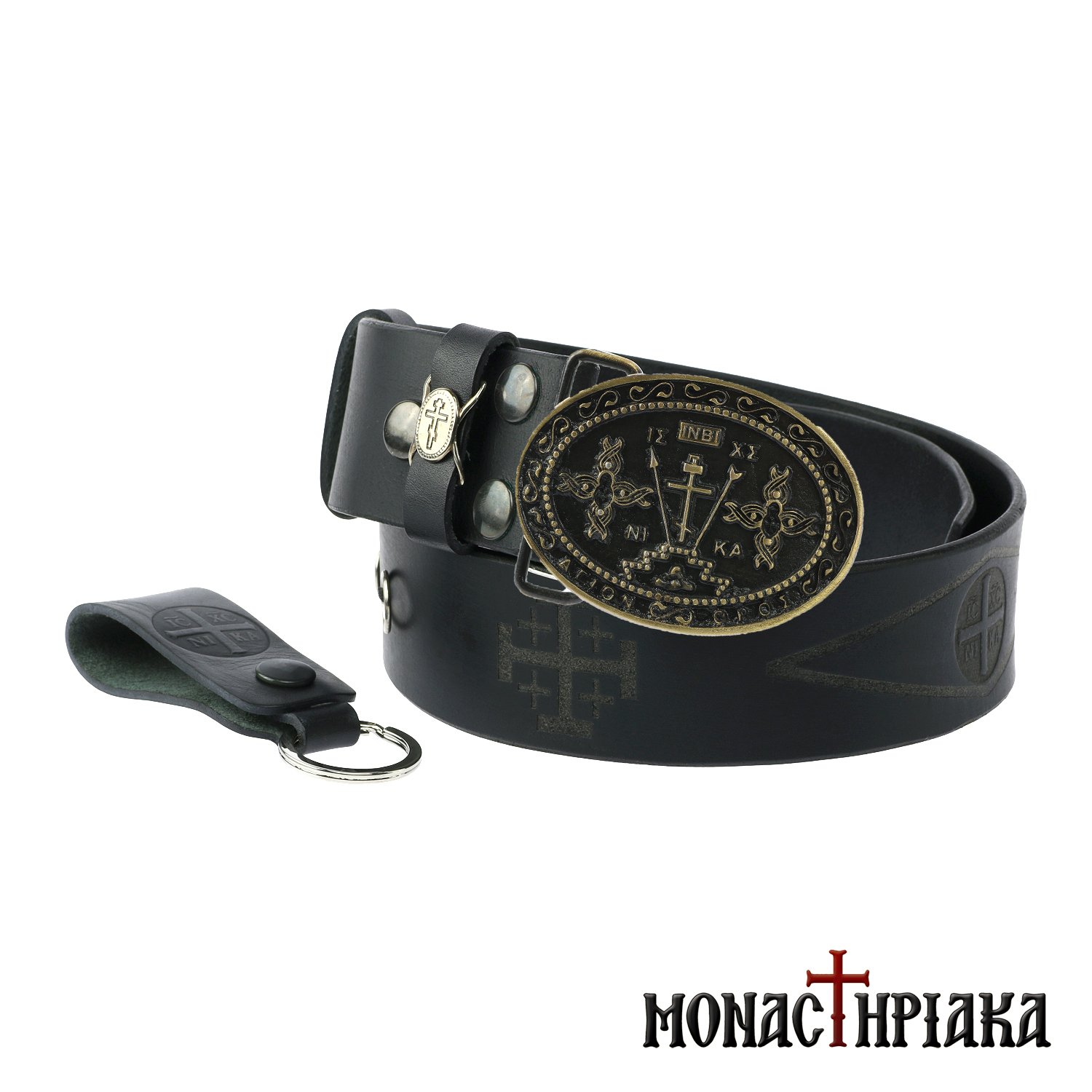 Δερμάτινη Ζώνη Σταυρός του Γολγοθά σε Μπρονζέ - Μαύρο | Ιερόν Κελίον Αγίου Νικολάου