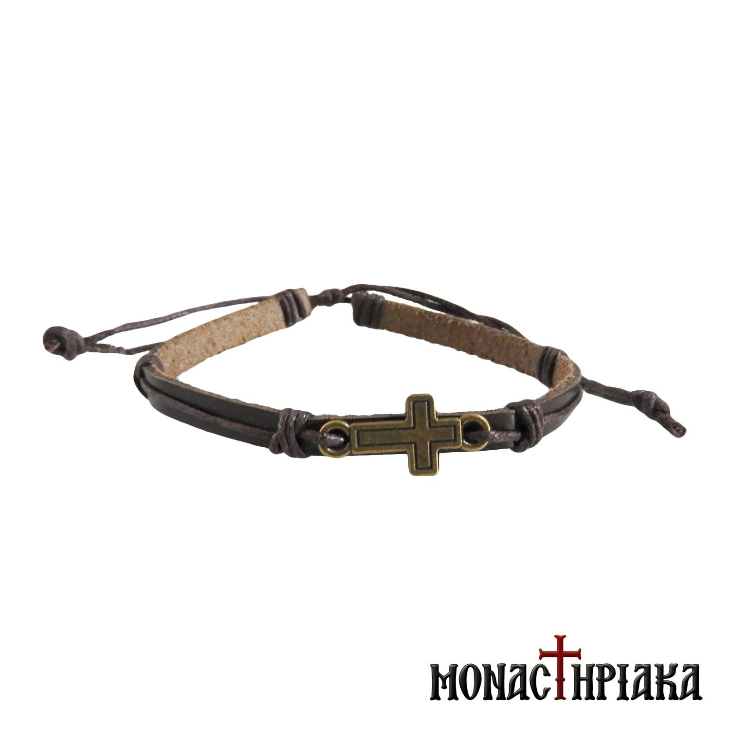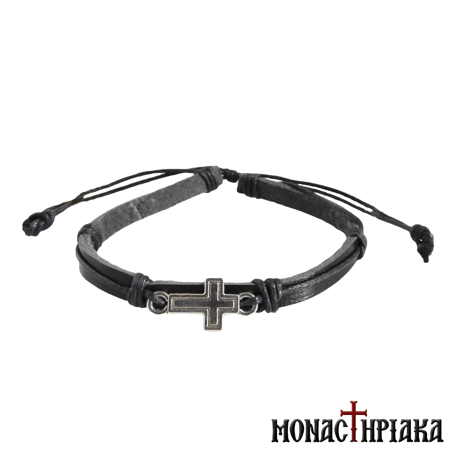 Δερμάτινο Βραχιόλι με Μεταλλικό Σταυρό
