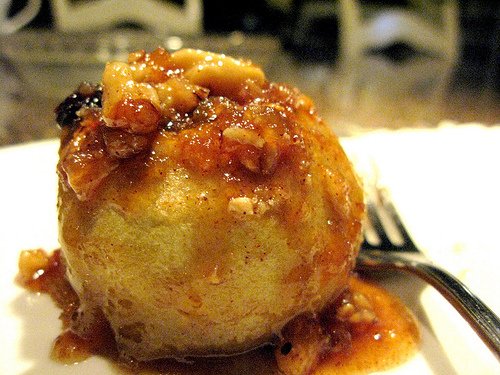 Peel the apples and with the special tool, open a hole in the middle removing their seeds. Spread the apples in the pan and add the liqueur. Mix sugar, nuts and cinnamon and with a teaspoon fill the holes of apples. Bake at 180 degrees for about an hour, covered with foil. Before you remove it from the oven, sprinkle with a small cup of brandy. After they are cool, whip the pastry cream, so it will become whipped cream (chantilly). Let it cool in the refrigerator. Then, garnish the apples and serve.