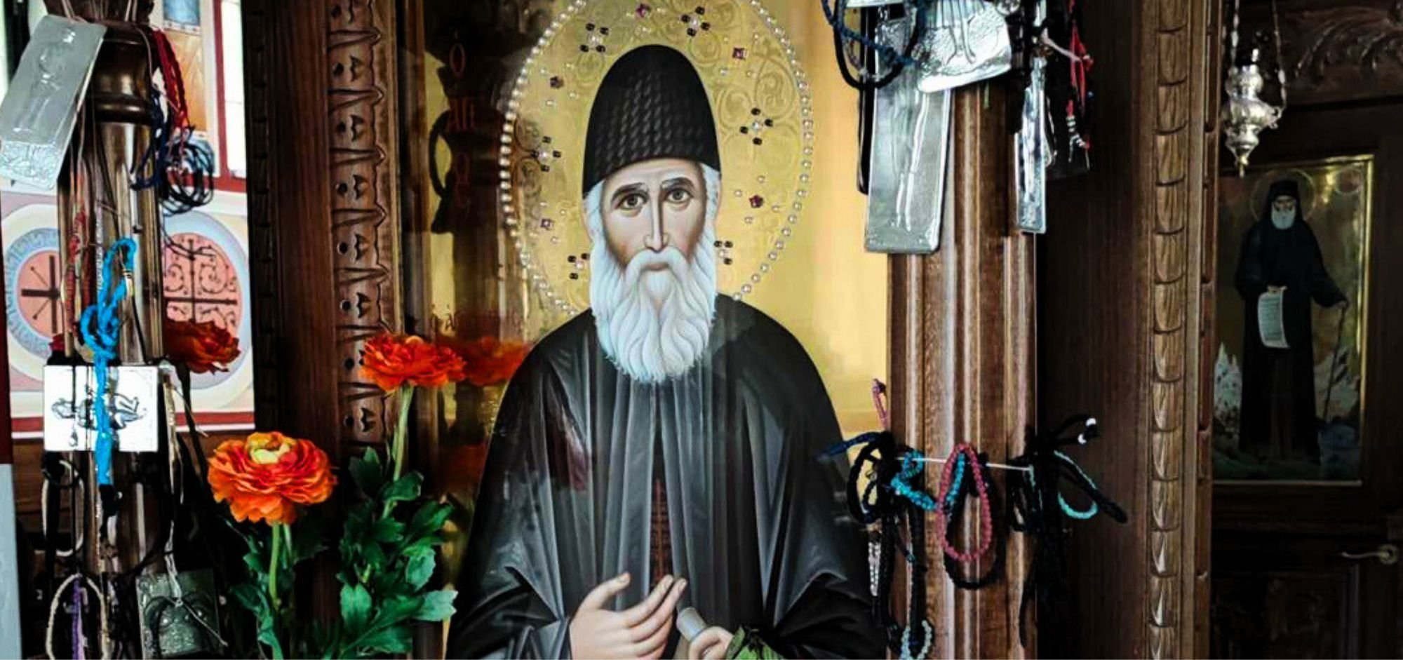 Find here: Wood carved cross with Saint Paisios