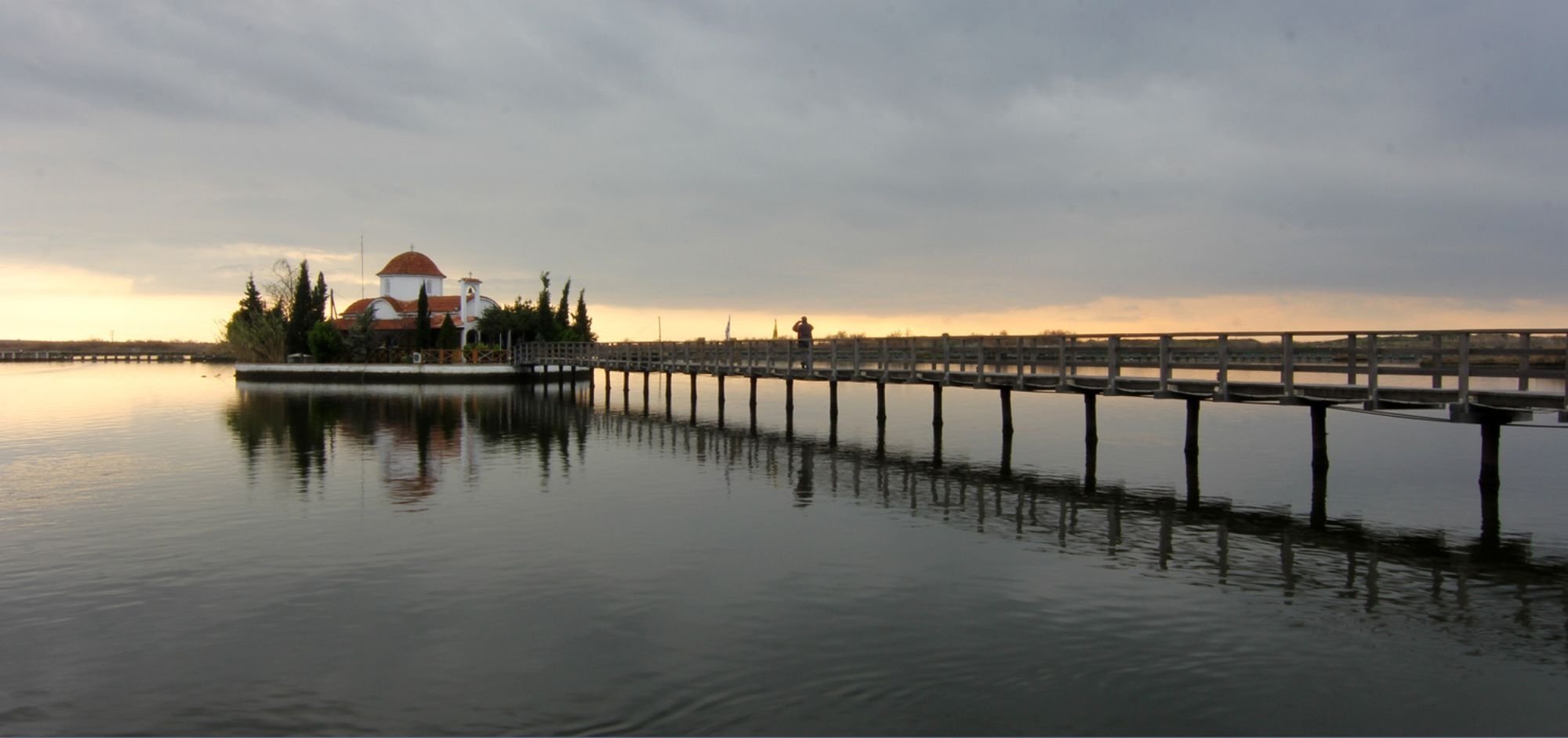 At the exact point where Lake Vistonida joins the Thrasian Sea, we find the impressive “floating” complex that extends to two small islands.
