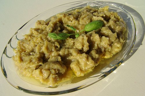 Bake the aubergines in the oven until they soften well and peel them. Beat all the ingredients in the blender and add the salt. Taste the food, in case it needs some more vinegar or salt.