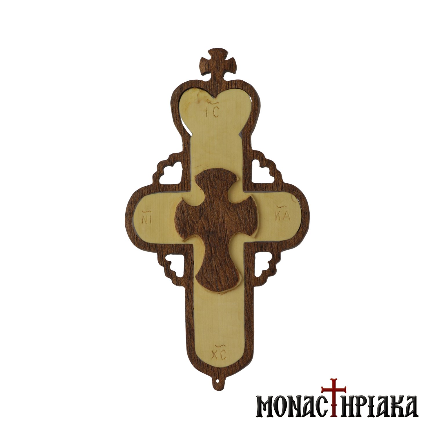 Wooden Byzantine Cross Carved on Walnut and Boxwood