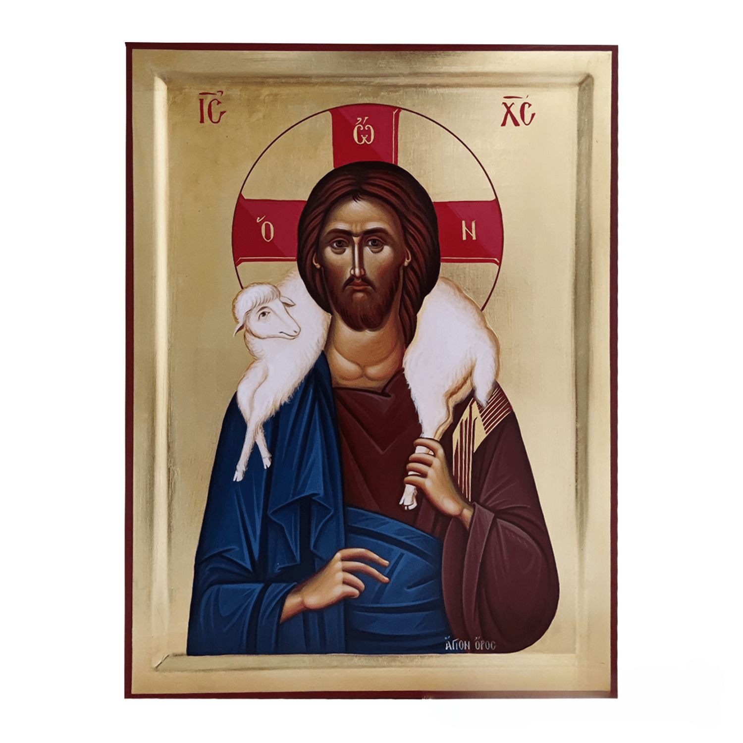 Wooden Byzantine Cross Jesus Christ the Good Shepherd