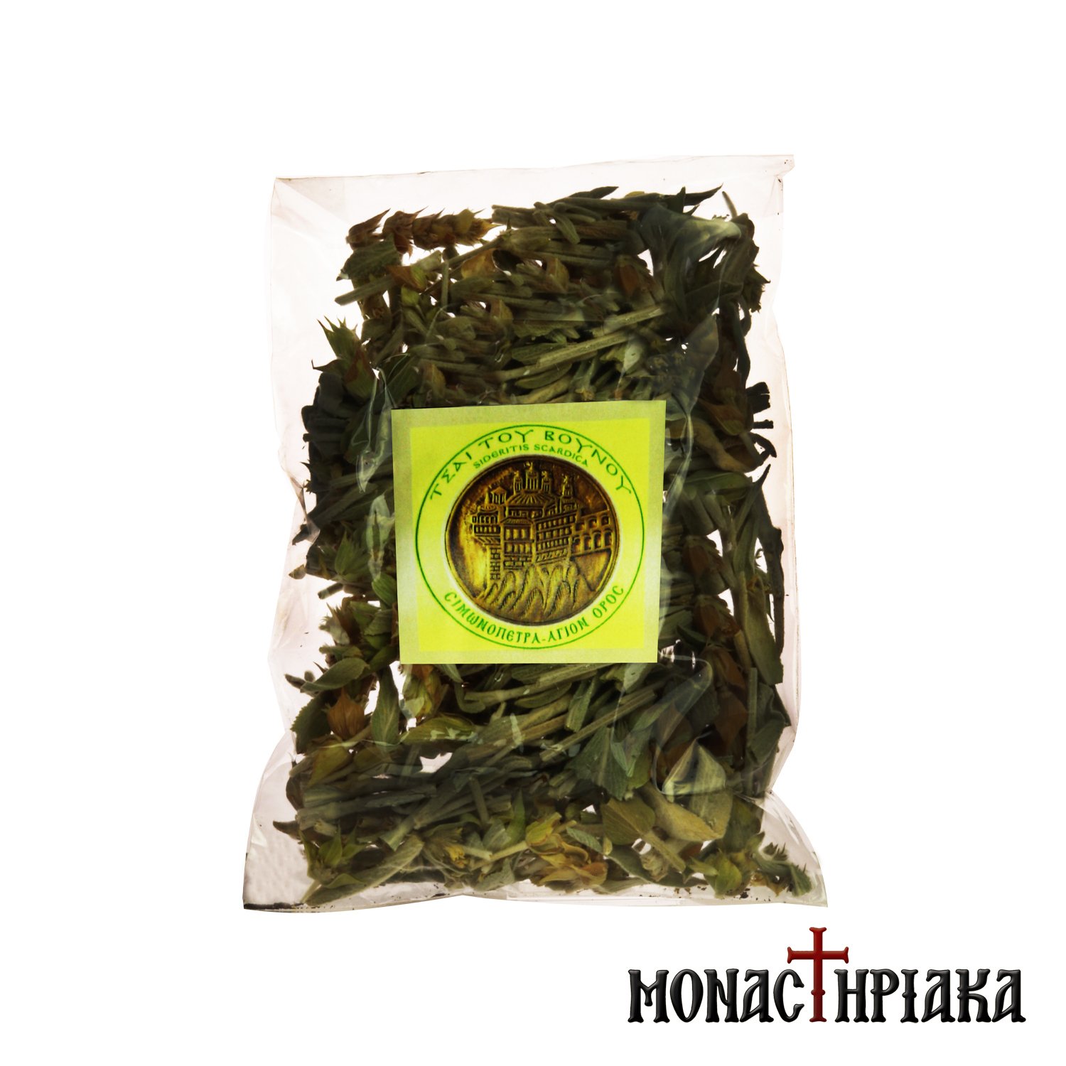 This aromatic medicinal plant belongs to the Lamiaceae family. In the Mediterranean region, which seems to be the place of origin of the plant, have been recorded over 100 different species of the genus Sideritis. The produced tea with the name "Mountain Tea" has many beneficial properties, which are due to the constituents of the essential oil (flavonoids). The mountain tea is preferred especially in the winter months because of its beneficial effects on colds and inflammations of the upper respiratory system, properties considerably strengthened by the addition of the Athonite chestnut honey.