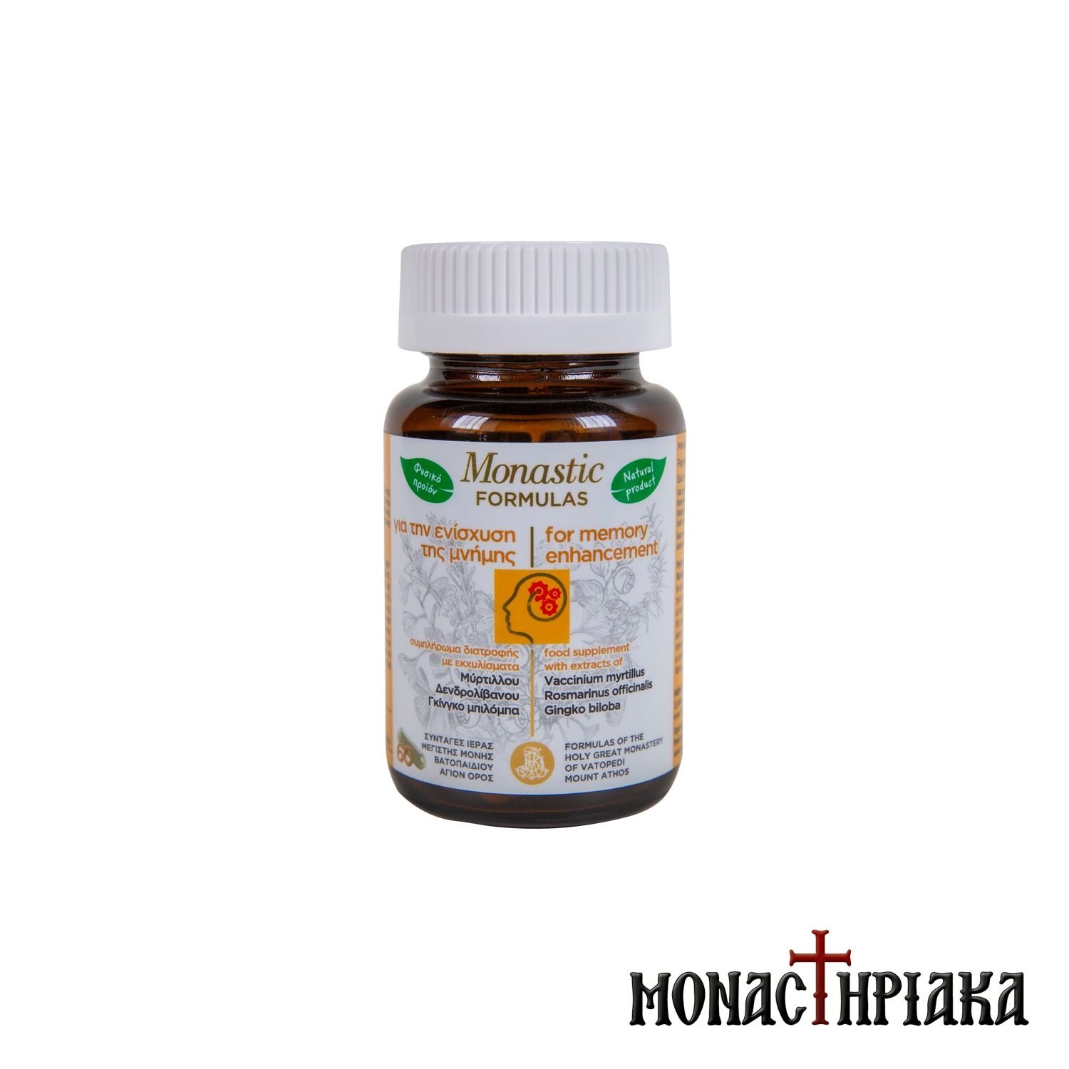 Nutritional supplement that contributes to the strengthening of memory, based on the many years of experience and knowledge of the monks at the Holy Great Monastery of Vatopedi on Mount Athos. Each pack contains 60 capsules with the following ingredients: