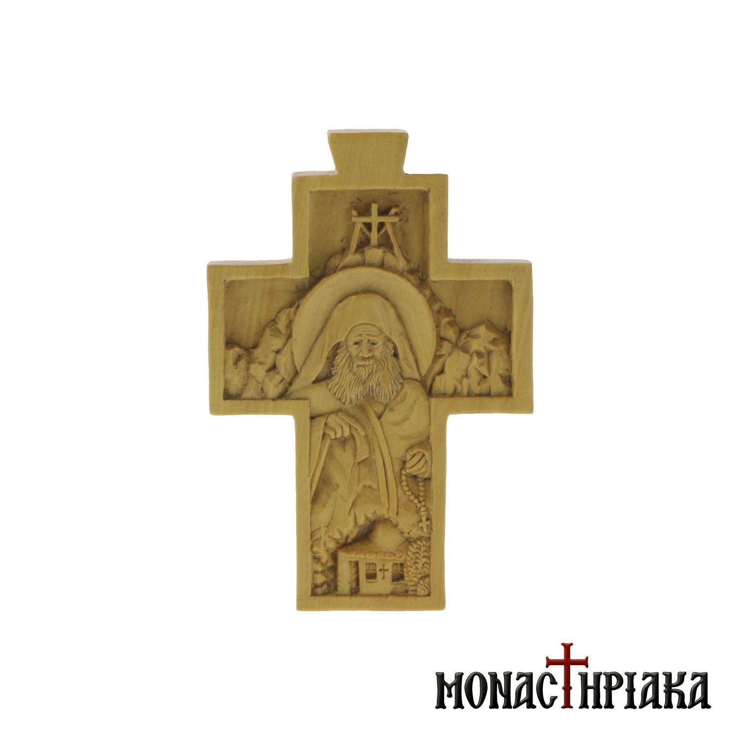 Pectoral Wood Carved Cross Saint Joseph the Hesychast