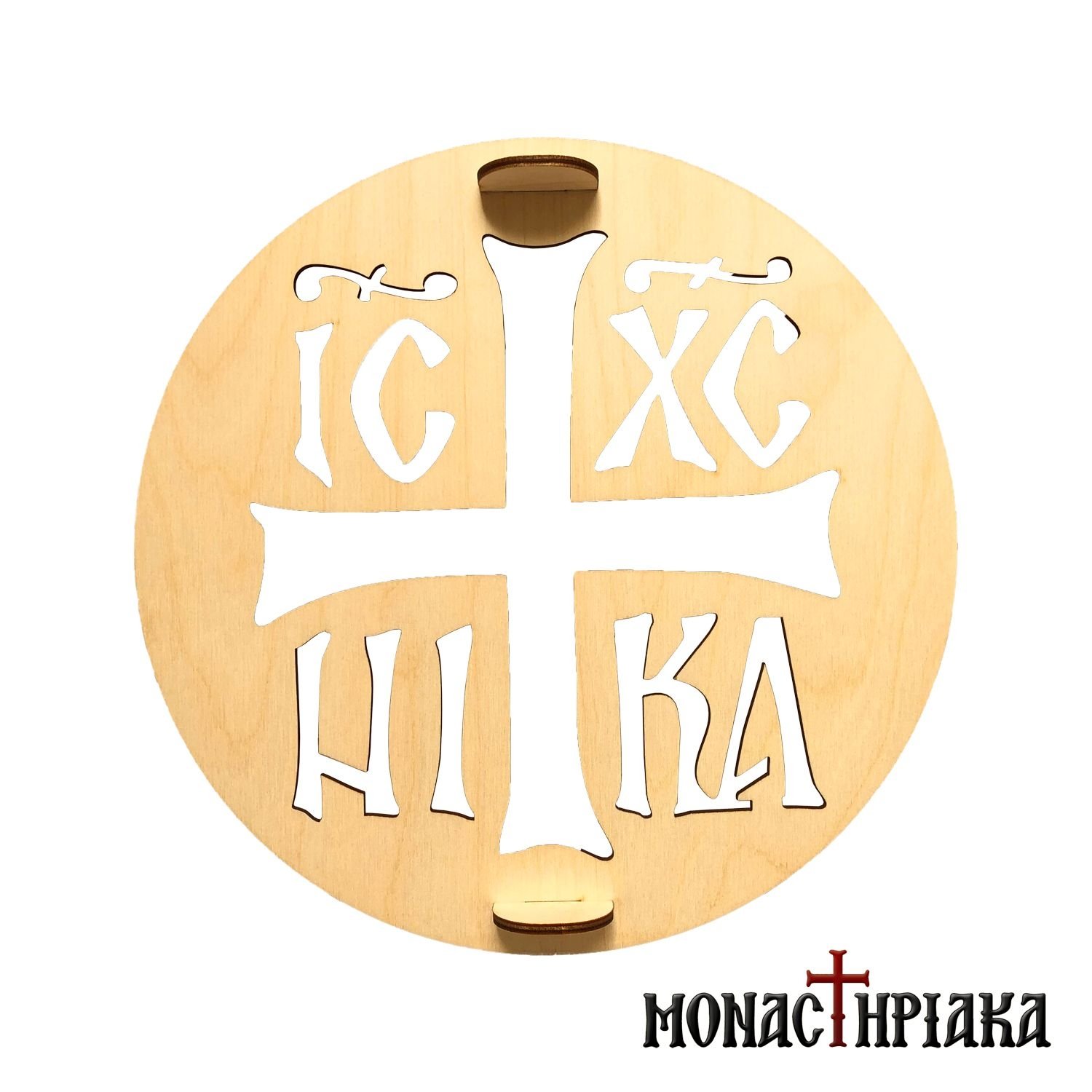 Wooden seal, stencil, for the decoration of the Koliva. The seal depicts a big Cross in the center and the symbol IC XC NIKA. Also, it has two handles for easier installation and removal.