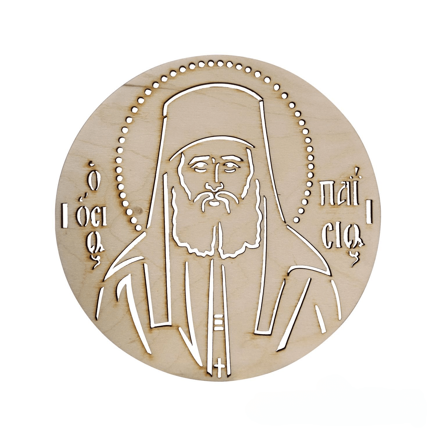 Wooden seal, stencil, for the decoration of the Koliva. The seal depicts the shape of Elder Paisios and has two handles for easier installation and removal.