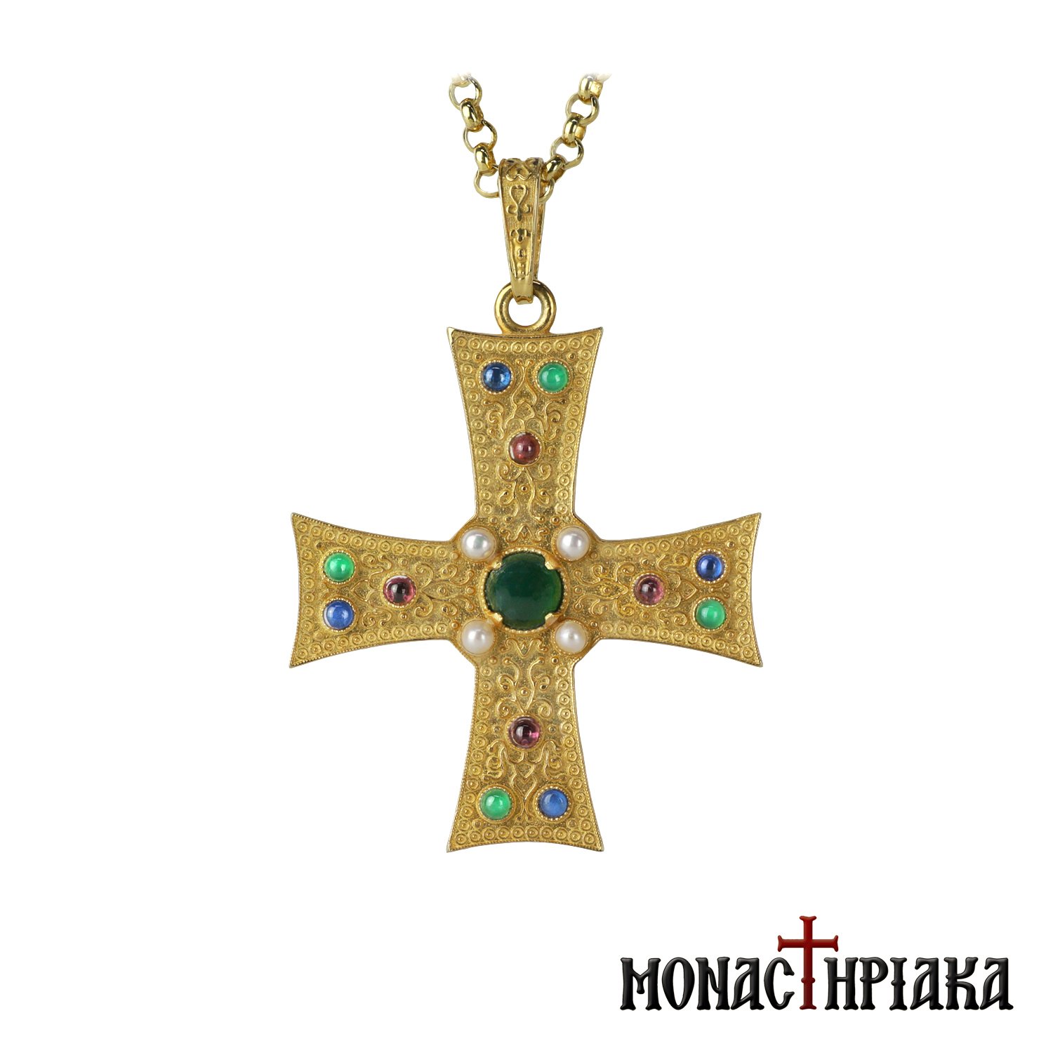 Silver Cross with 6 Colorful Stones