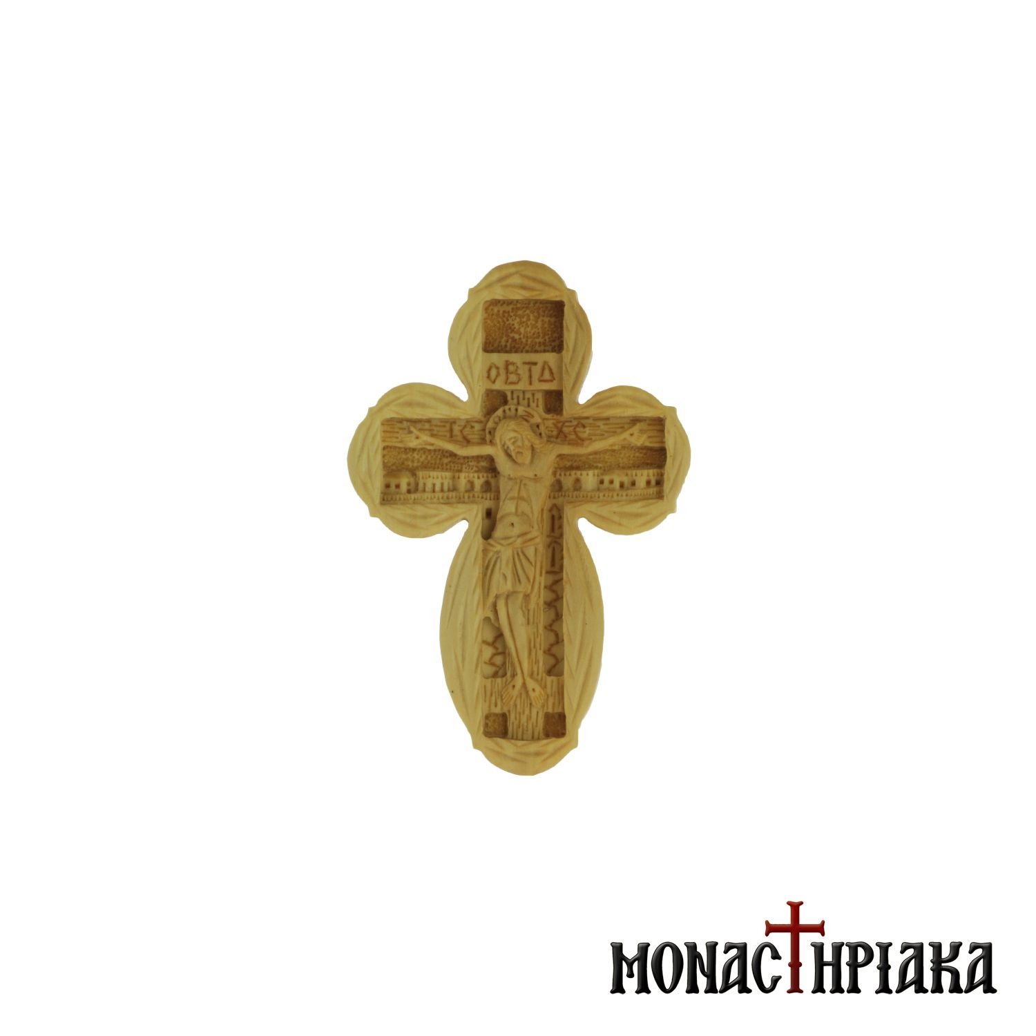 Wooden Byzantine Cross Carved on Walnut and Boxwood