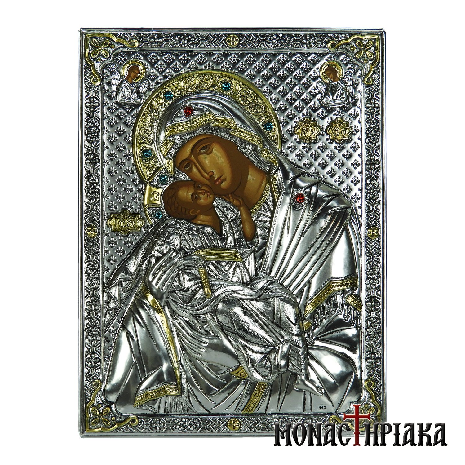 Virgin Mary Glikofilousa Silver Pendant
