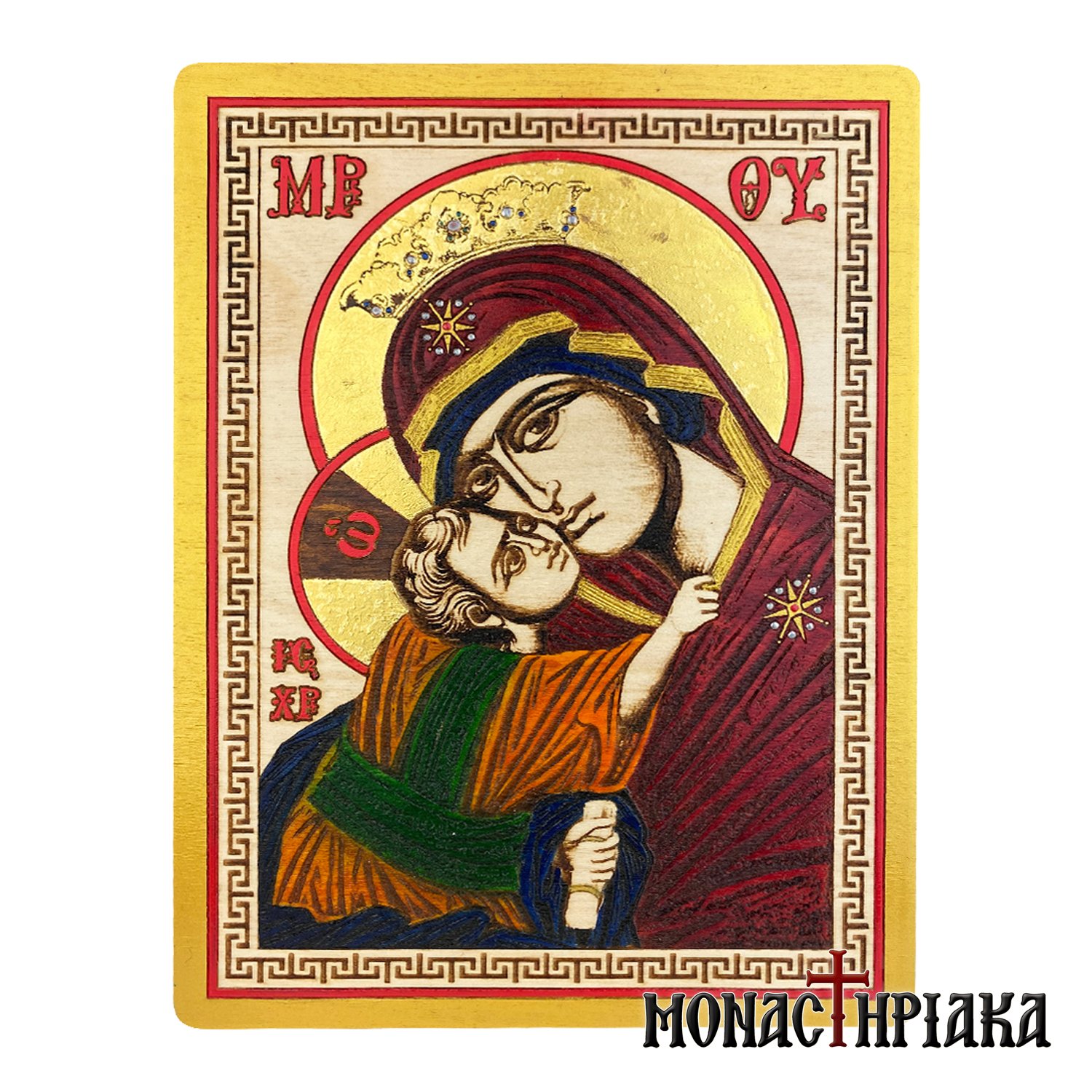 Handmade Wood Carved Icon with Panagia Glykofilousa