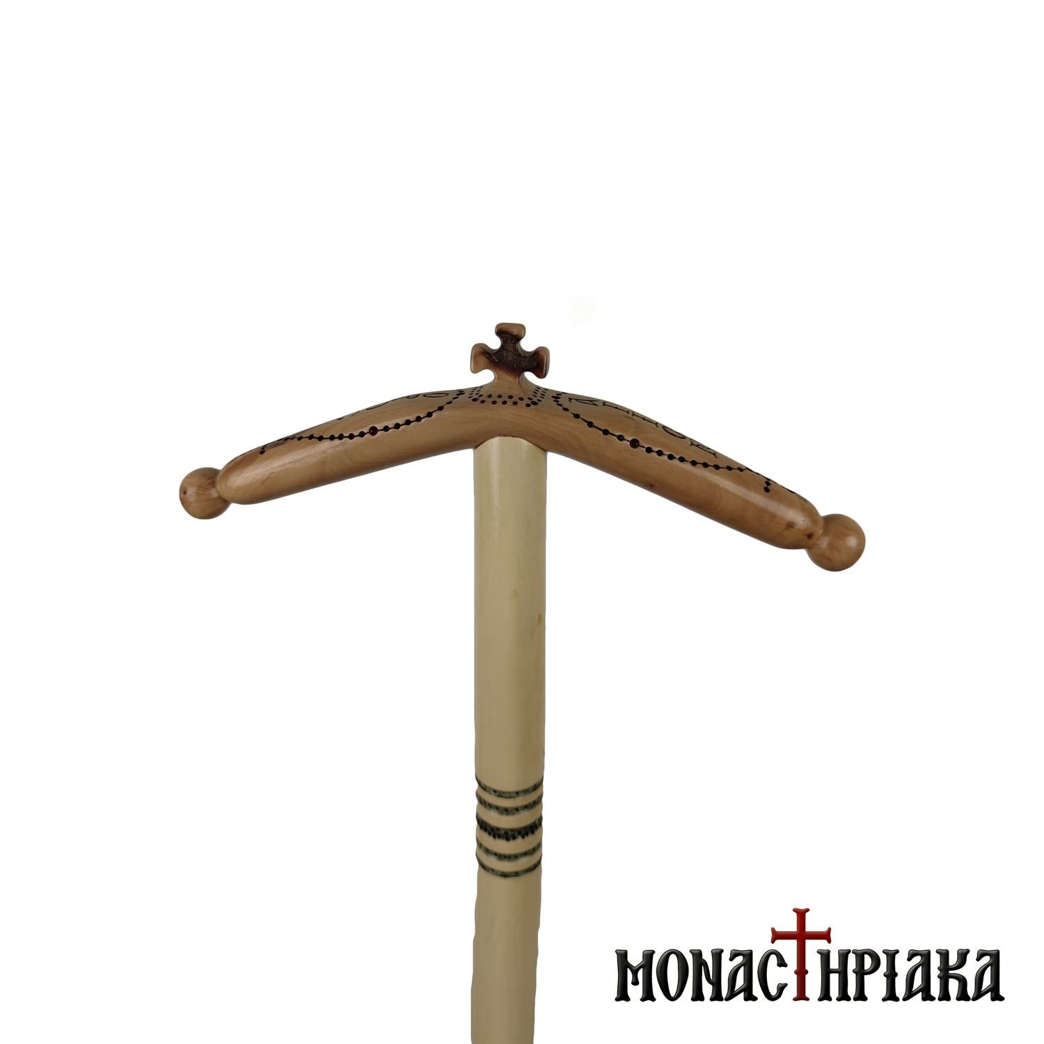 The wooden walking sticks or “vactiries’’, as the ancient Greeks used to call them, are embedded in the life of the person, who is wandering, travelling on feet or lives and works in the nature. There are many representations and references of the canes in grave markers, in black-figure potteries and in the texts of Ancient Greek Literature. In Mount Athos, the walking sticks have always been beloved and useful protective tools for the monks. Here, where the time flows effortlessly, the monk has the ease to engrave on the cane motives, taken either from the religious globe, or from the natural (visible) world. Illustrations such as the Holy cross, Saint George, riders, birds, animals, human creatures or abstract designs used to be, and still are among the usual topics that the whittler monks choose. Plenty of raw material and in great quality are found easily in the virgin forests of Mount Athos; wild olive-trees, kermes, beech trees, dogwoods, linden tree and many more. Some canes are plain and others are more “heavy” or formal with special cravings, even despotic canes.