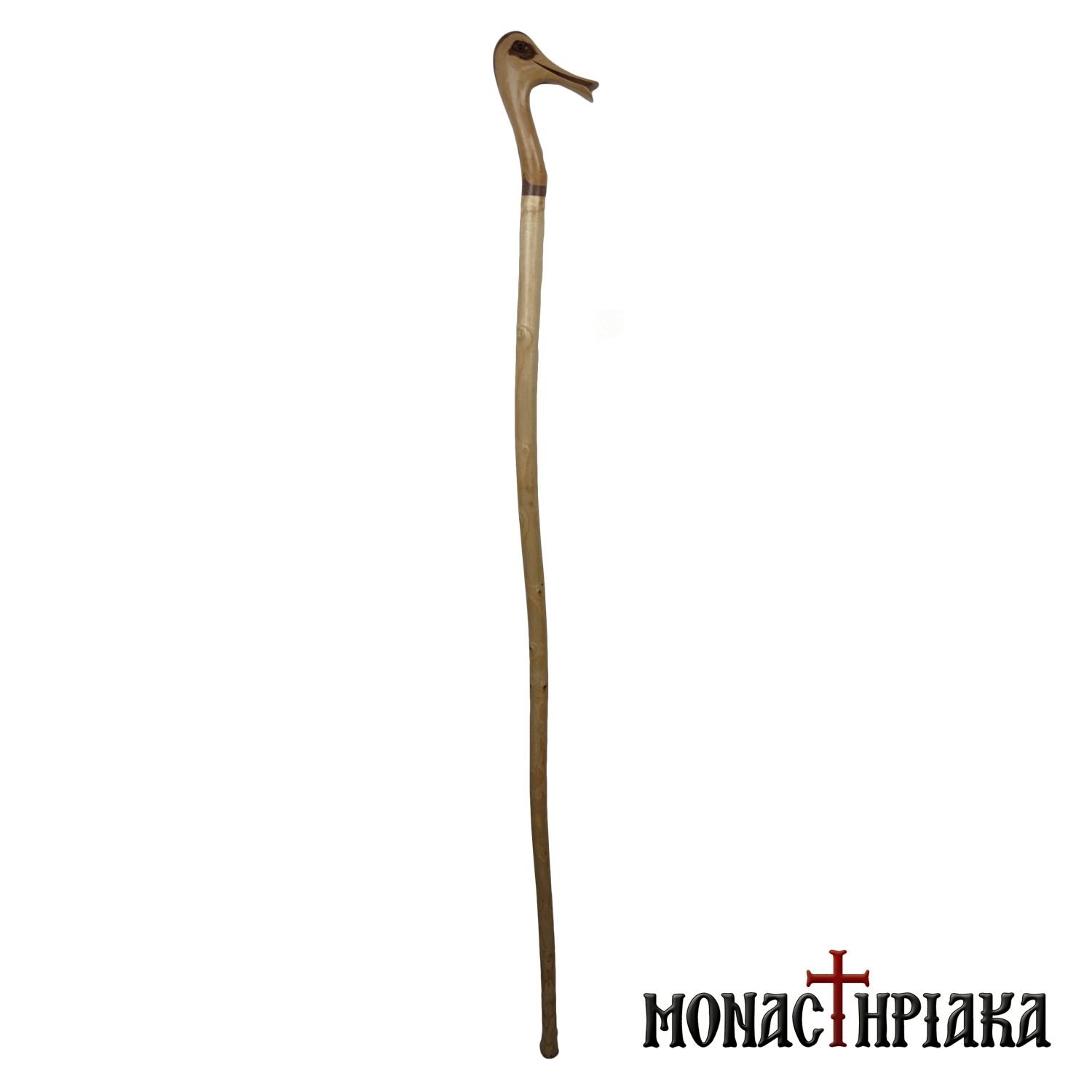 The wooden walking sticks or “vactiries’’, as the ancient greeks used to call them, are embedded in the life of the person, who is wandering, travelling on feet or lives and works in the nature. There are many representations and references of the canes in grave markers, in black-figure potteries and in the texts of Ancient Greek Literature. In Mount Athos, the walking sticks have always been beloved and useful protective tools for the monks. Here, where the time flows effortlessly, the monk has the ease to engrave on the cane motives, taken either from the religious globe, or from the natural (visible) world. Illustrations such as the Holy cross, Saint George, riders, birds, animals, human creatures or abstract designs used to be, and still are among the usual topics that the whittler monks choose. Plenty of raw material and in great quality are found easily in the virgin forests of Mount Athos; wild olive-trees, kermes, beech trees, dogwoods, linden tree and many more. Some canes are plain and others are more “heavy” or formal with special cravings, even despotic canes.