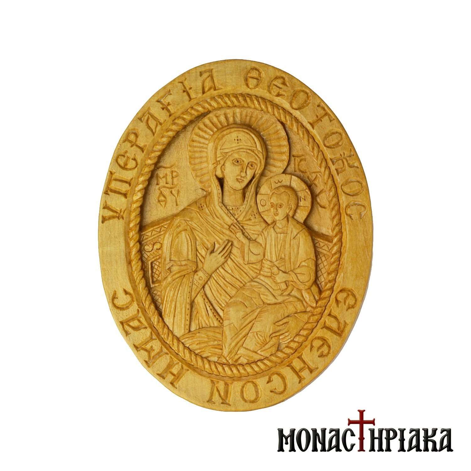 Wood Carved Pendant with Virgin Mary Gorgoepikoos