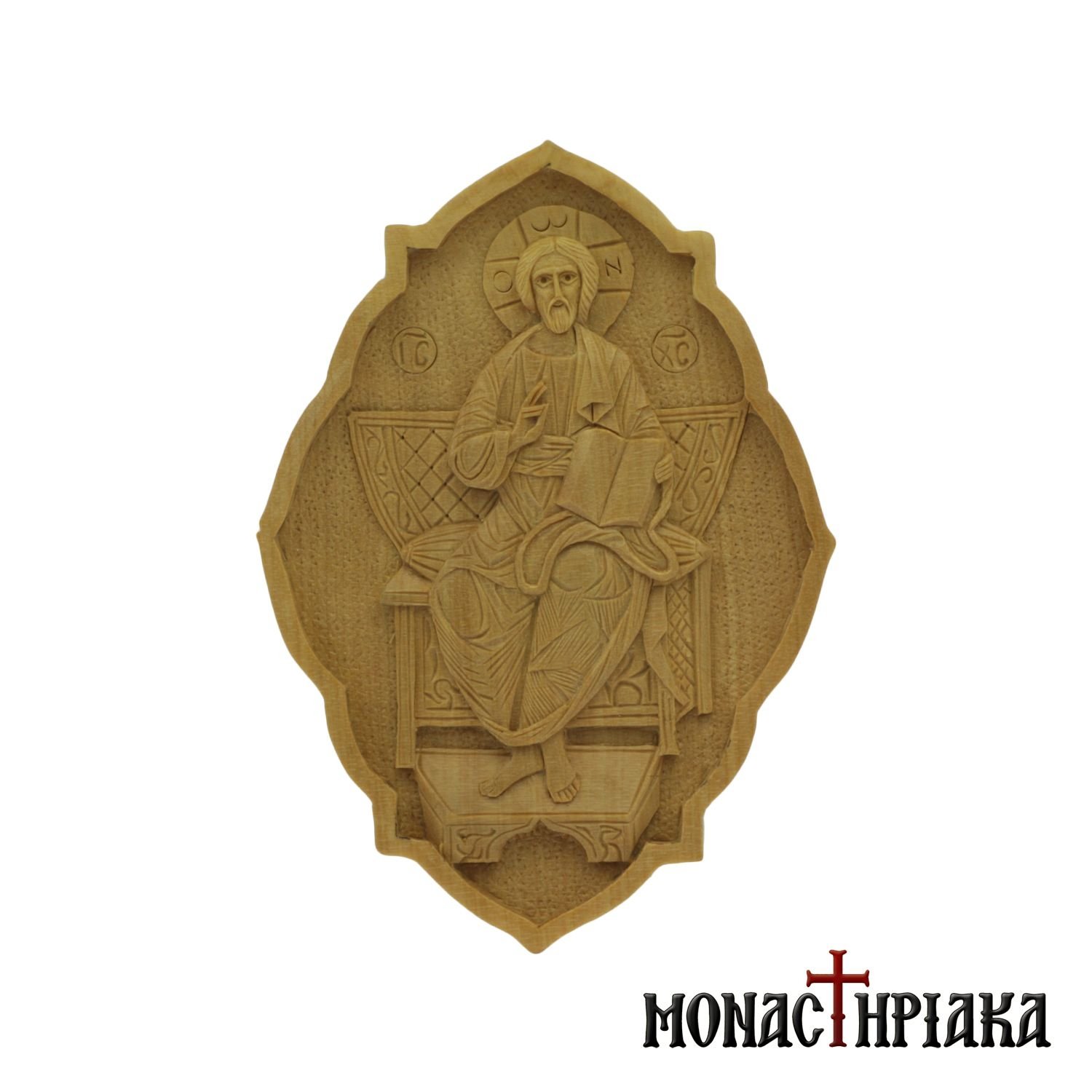 Wood carved engolpion (panagia) with “Blessing Jesus”