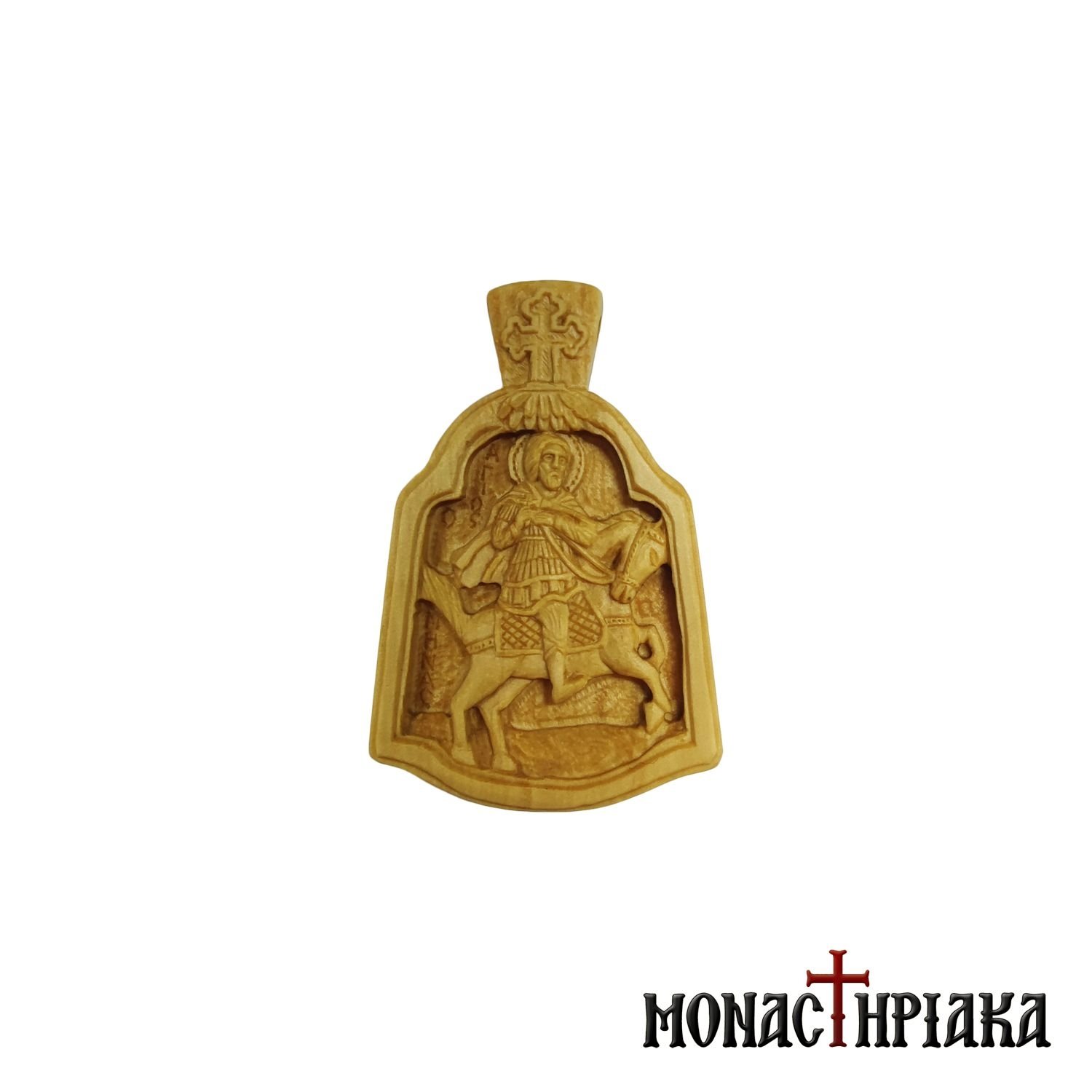Wood Carved Engolpion with Theotokos Glykofilousa