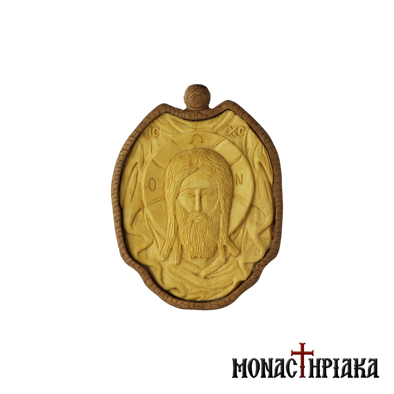Wood-Carved Engolpion with Jesus Christ