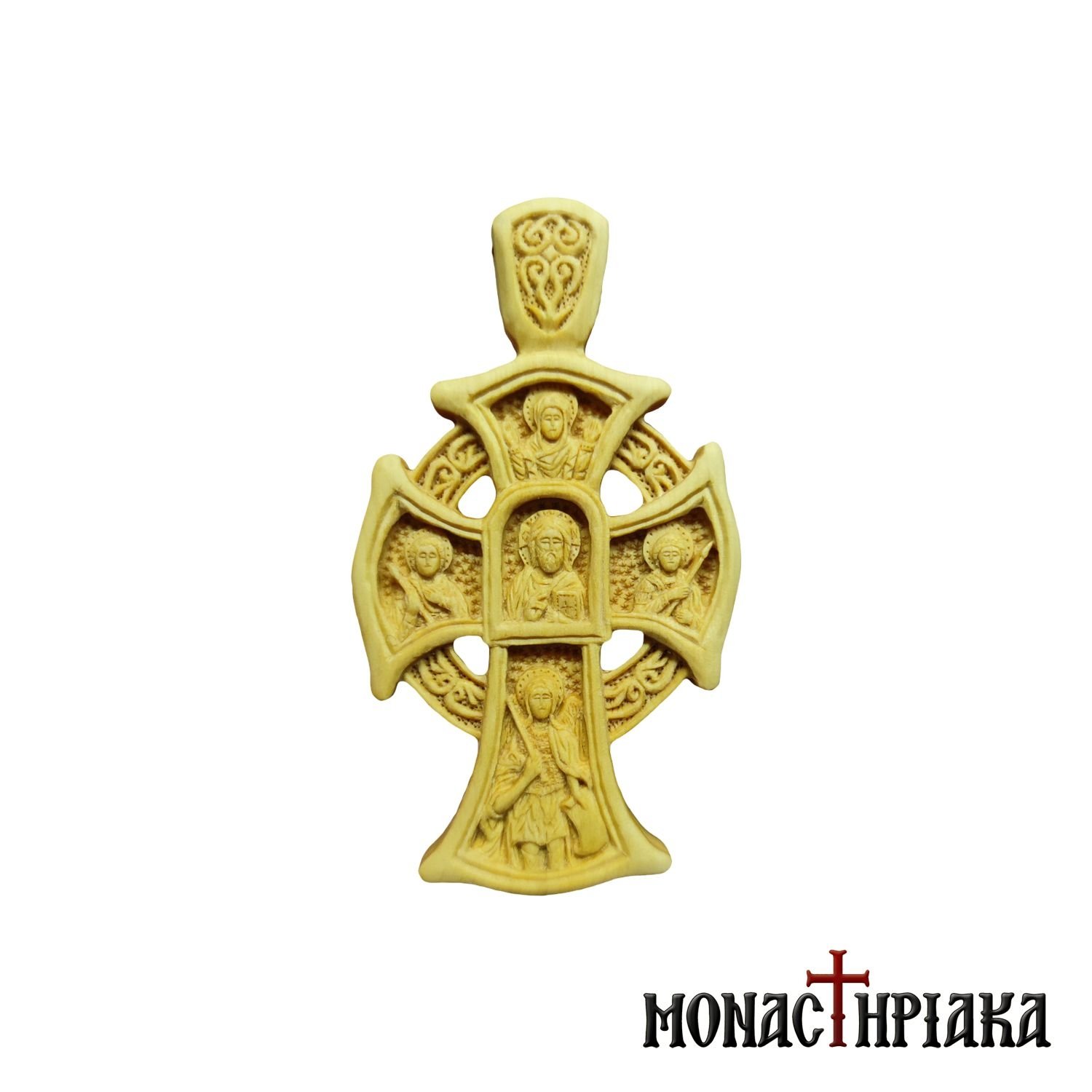 Wood Carved Multi-personal Cross | Jesus Christ, Theotokos, St. Demetrios, St. George and Archangel Michael
