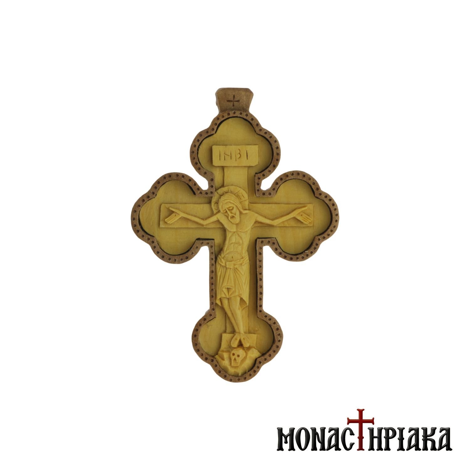 Wooden Byzantine Cross Carved on Walnut and Boxwood