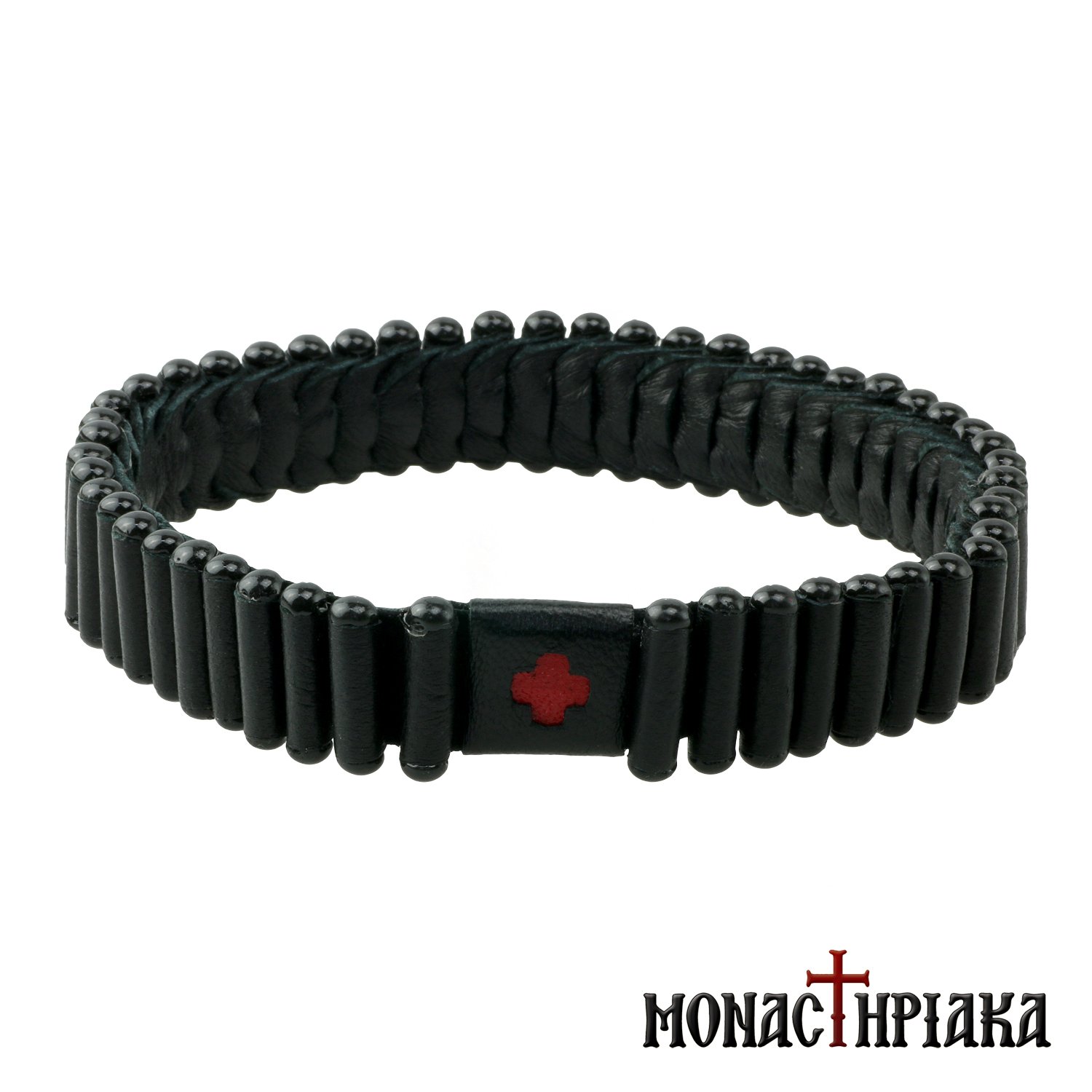 Κομποσχοίνι Δερμάτινο 50άρι Ρώσικο με Κόκκινο Σταυρό