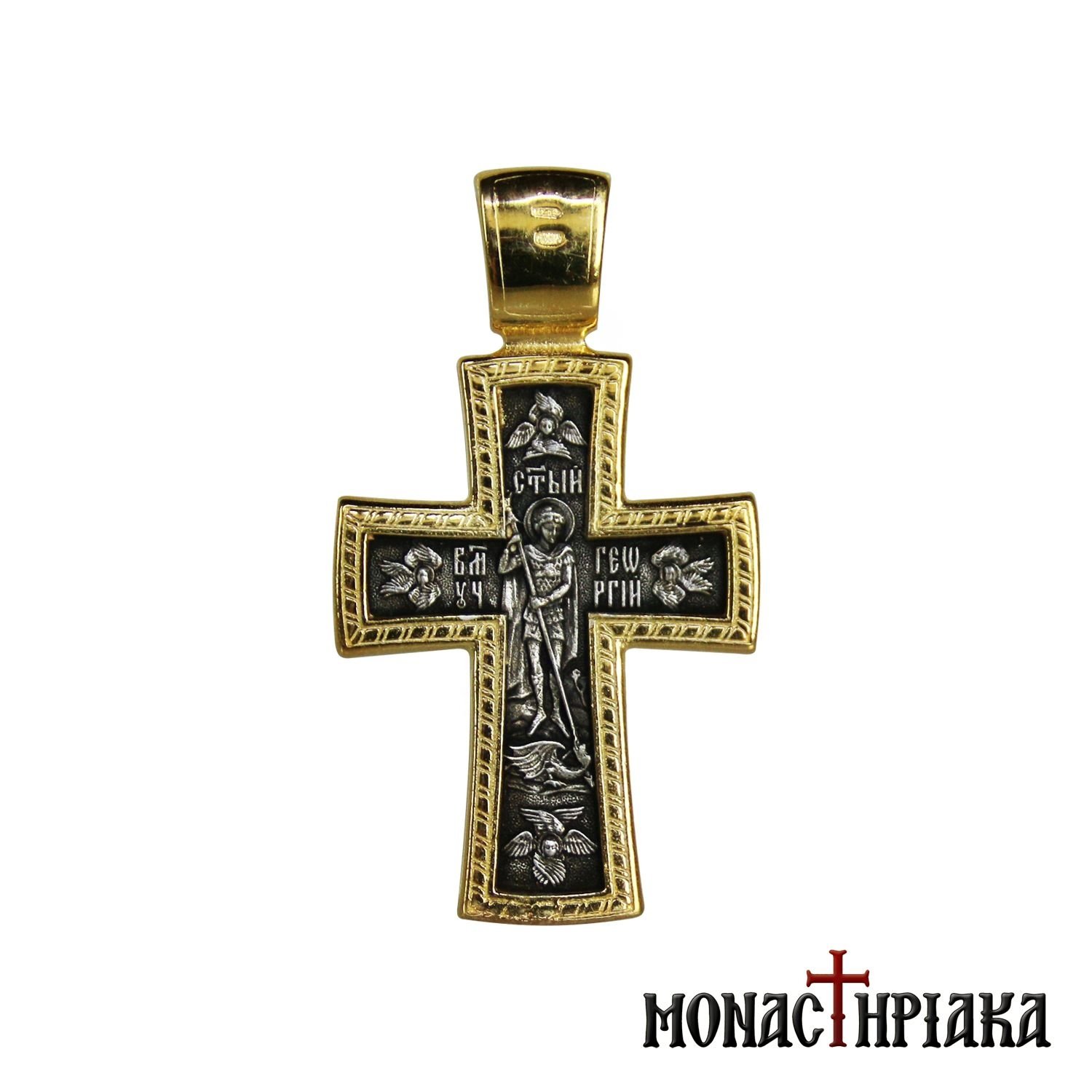 Σταυρός Ασημένιος με τον Ιησού Χριστό και τον Άγιο Γεώργιο