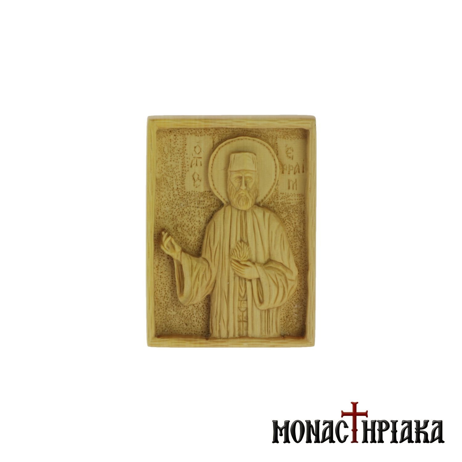 Ξυλόγλυπτη Εικόνα με τον Άγιο Εφραίμ της Νέας Μάκρης