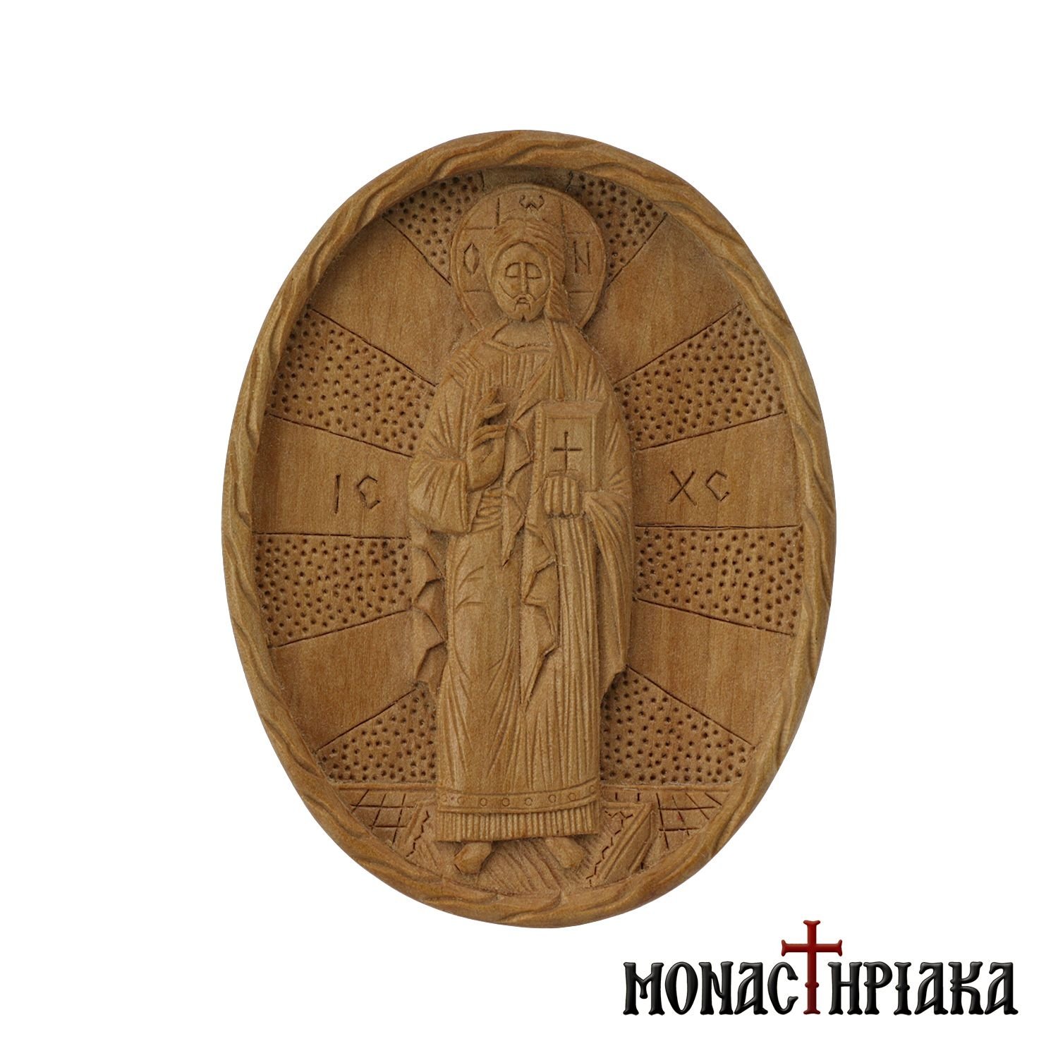 Ξυλόγλυπτο Εγκόλπιο με τον Ιησού Χριστό