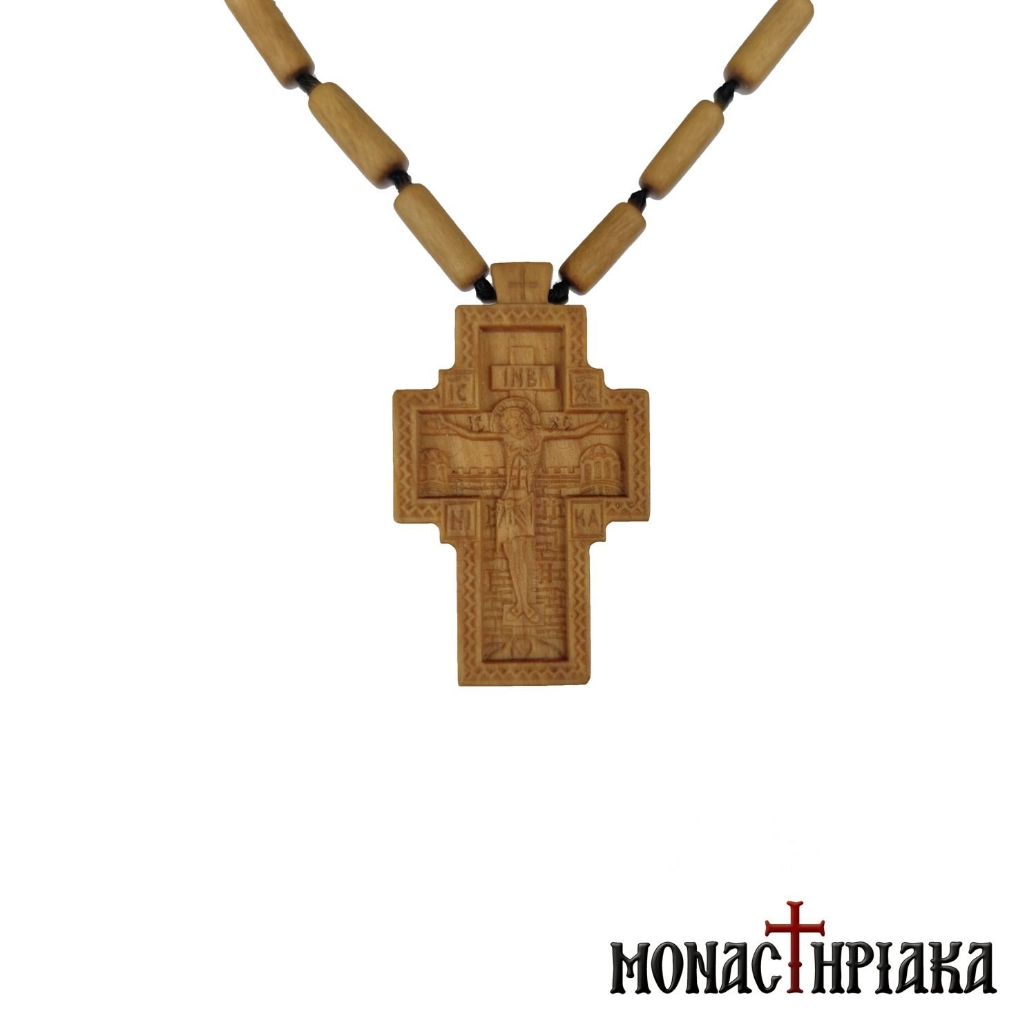 Ξυλόγλυπτος Βυζαντινός Σταυρός με Ξύλινη Αλυσίδα