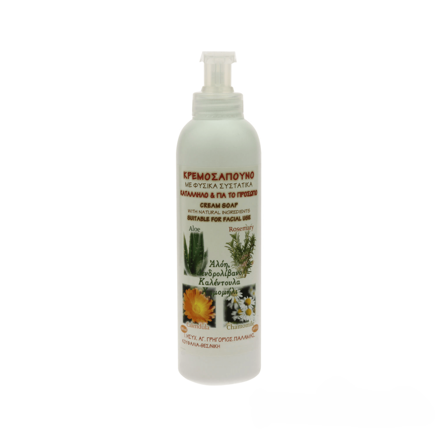 Μοναστηριακό υγρό σαπούνι για τα χέρια και το σώμα, με φυσικά συστατικά αλόης, δενδρολίβανου, καλέντουλας και χαμομηλιού, από την αδελφότητα της Ιεράς Μονής Αγίου Γρηγορίου του Παλαμά.